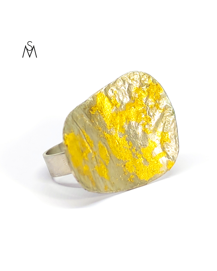 Hecho en plata texturada y láminas de oro 24 quilates